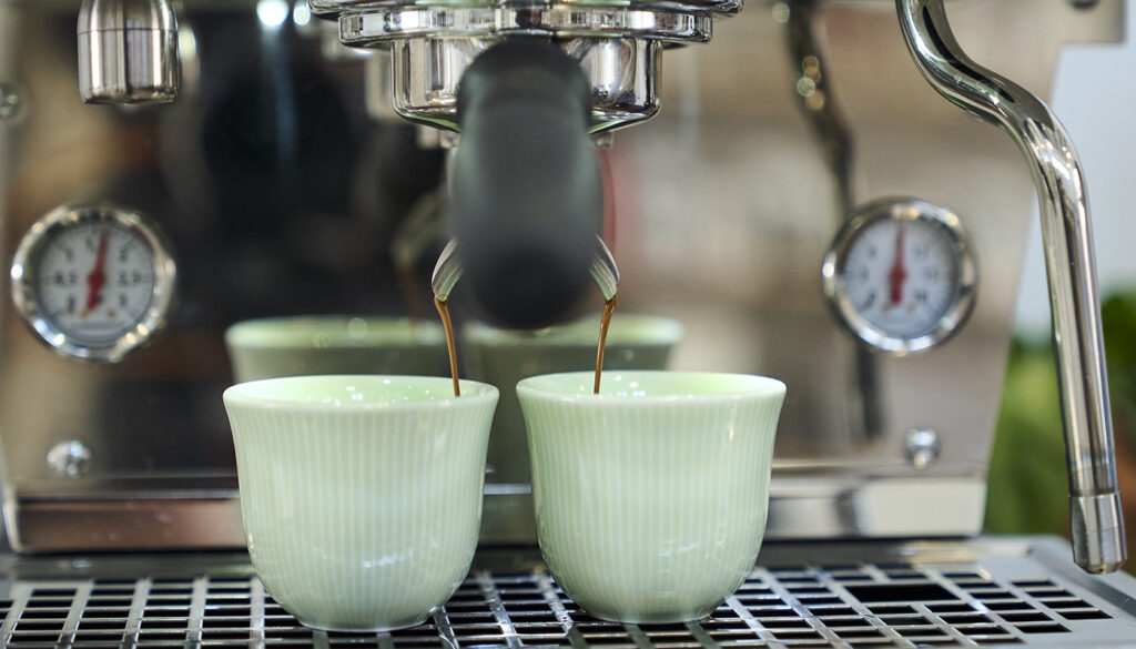 En perfekt espresso med brew ratio 50% = god krop med balanceret syrlighed og sødme.